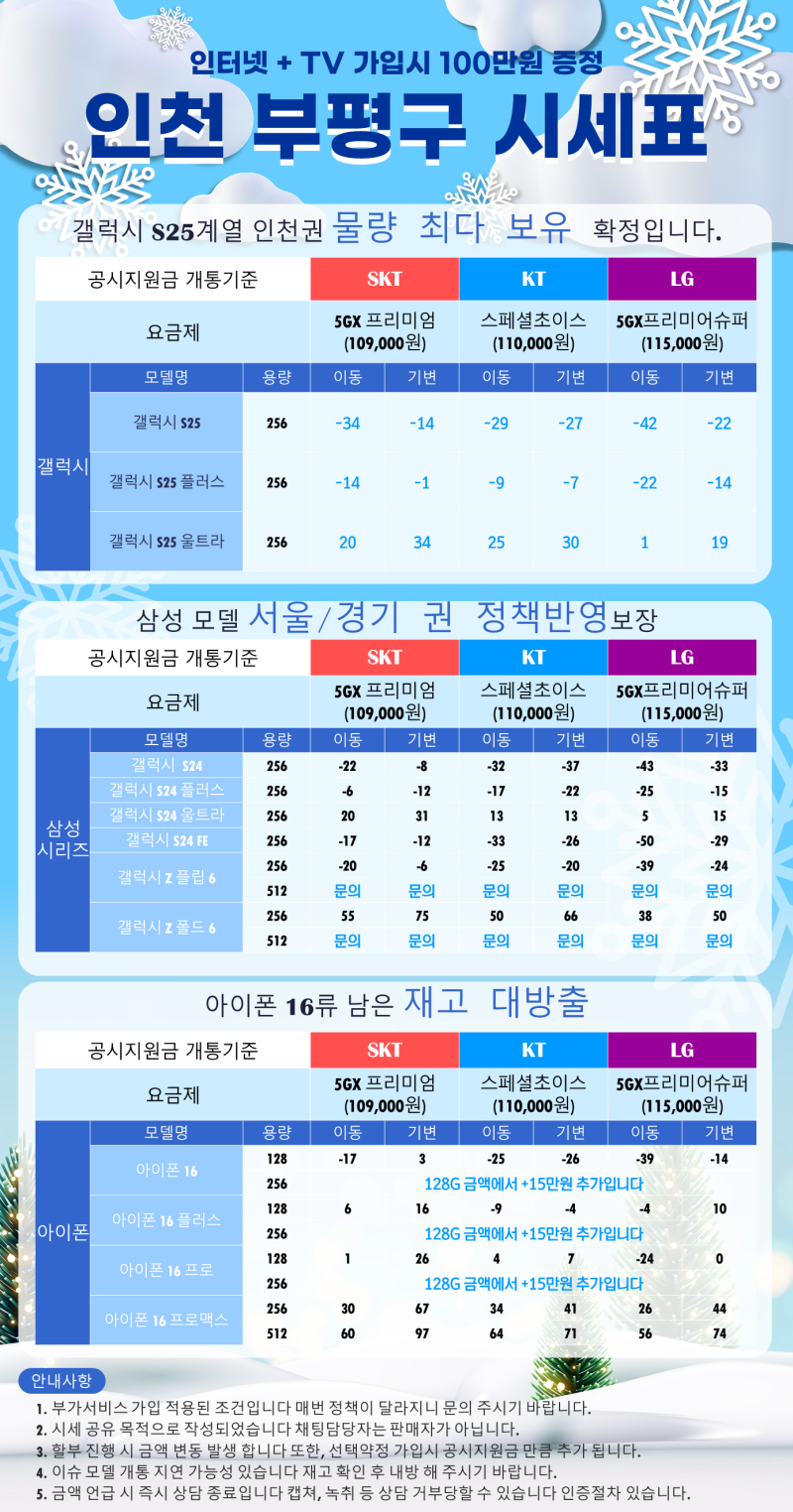 인천시 부평구 휴대폰 성지 시세표 > 경기/인천 휴대폰성지