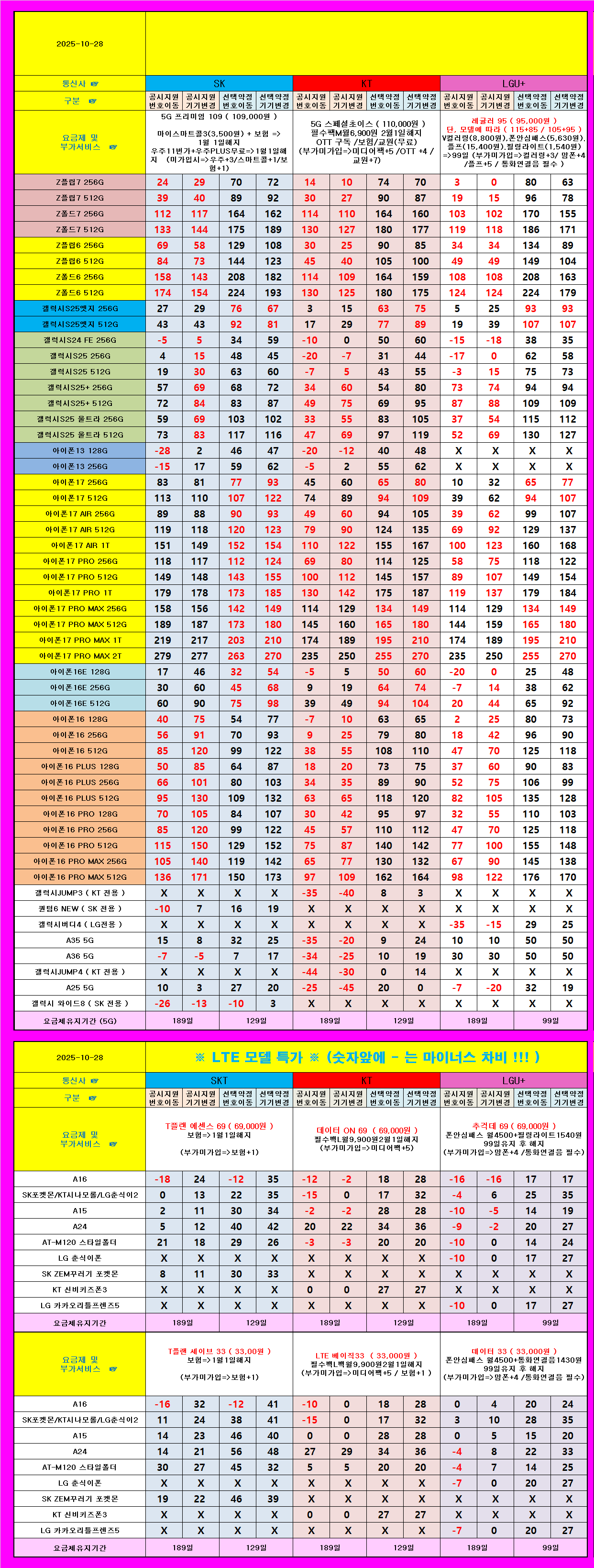 !!!! 당일 개통 시세 !!!!